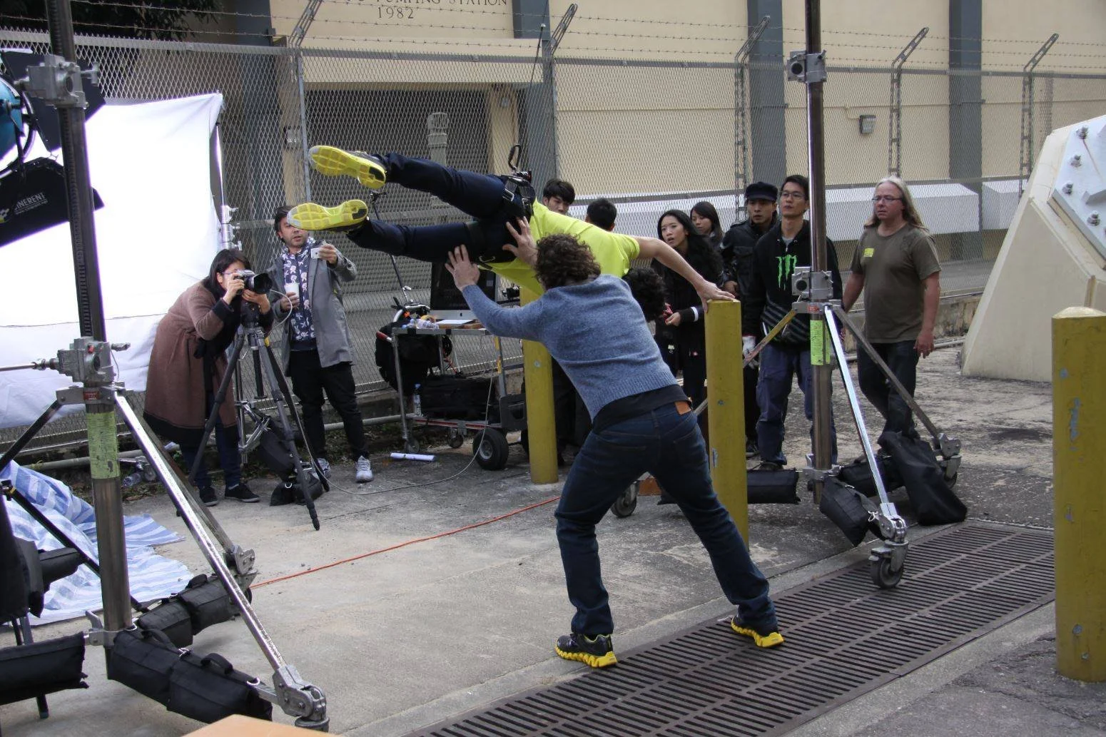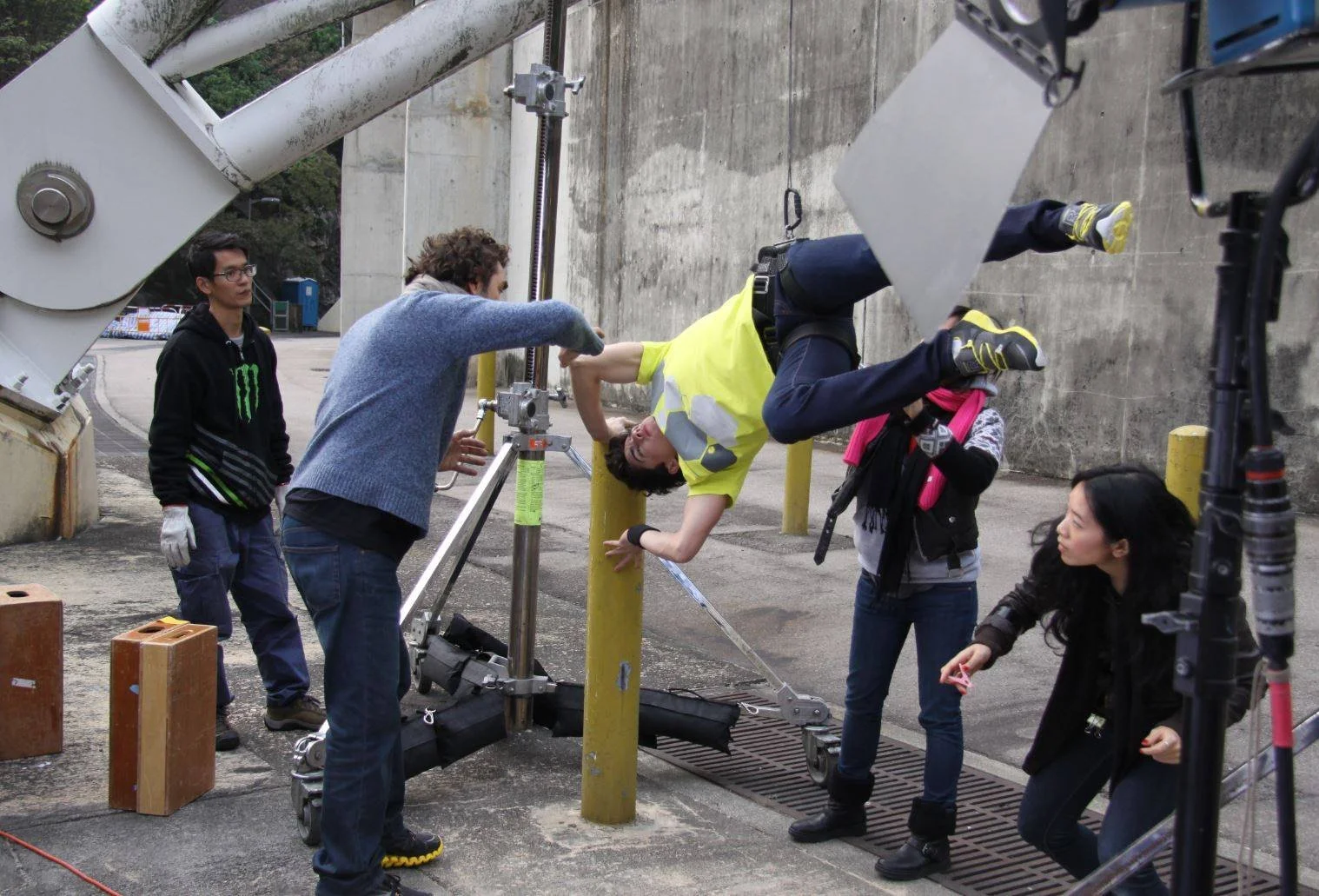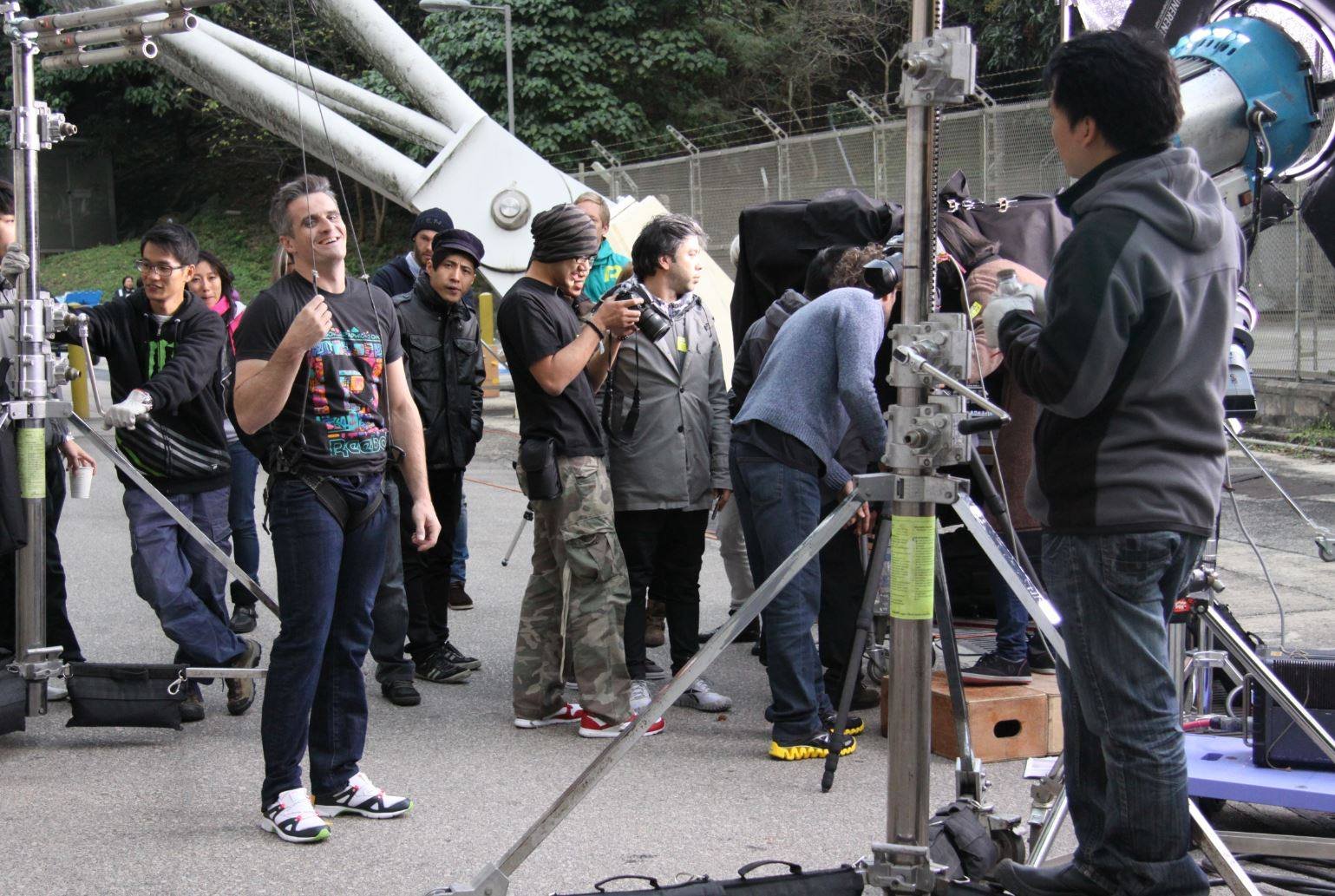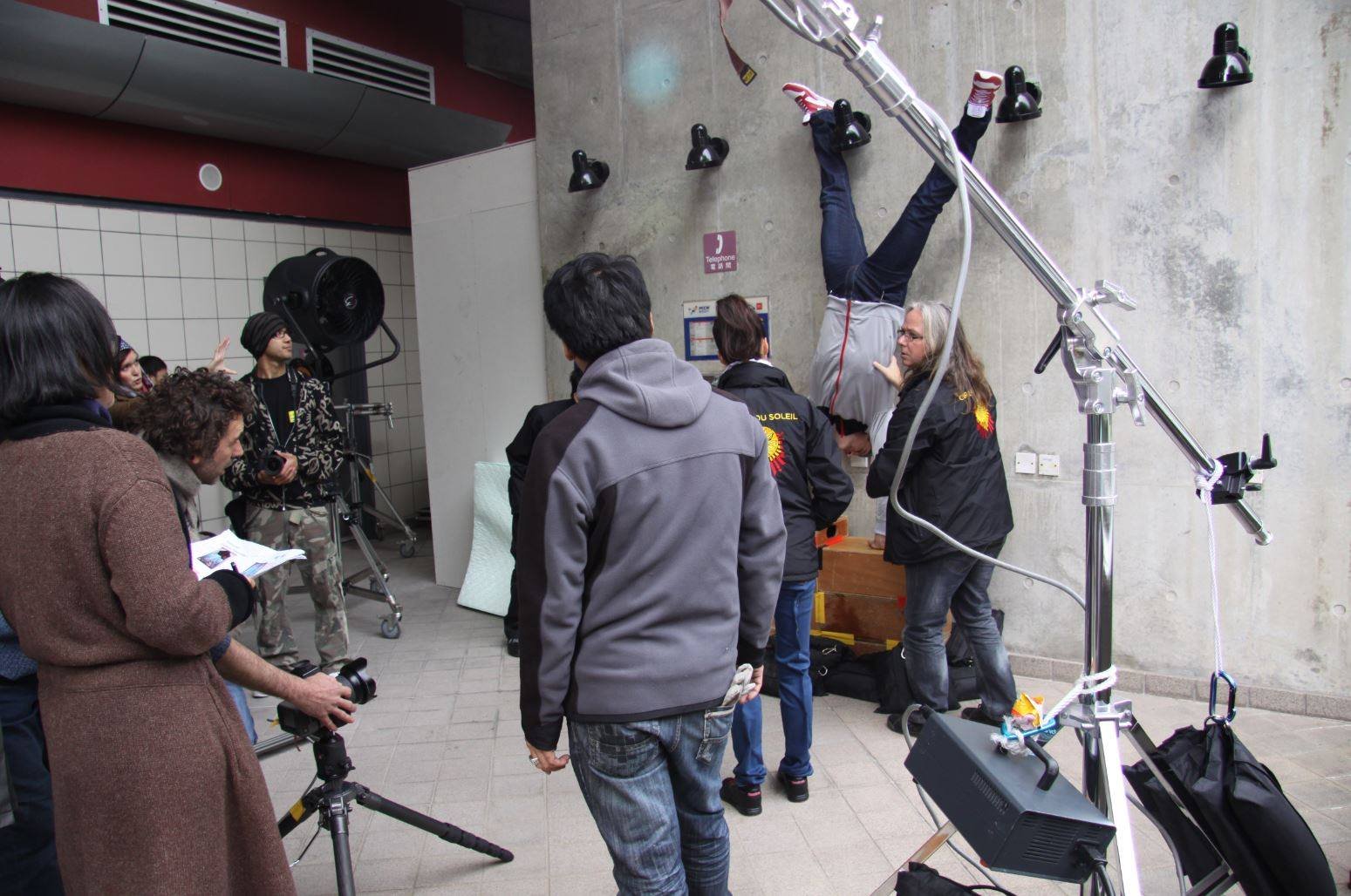 Cirque du Soleil artists from nearby Macau took the jetfoil fast ferry over to the shoot location at the Hong Kong stadium on a very cold December day.