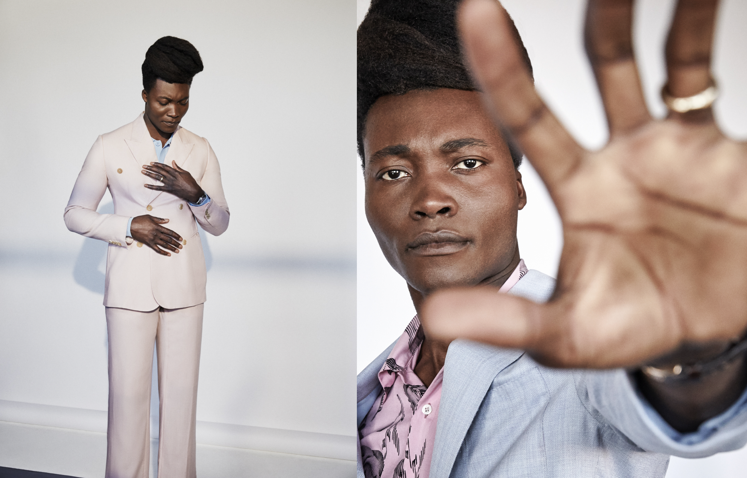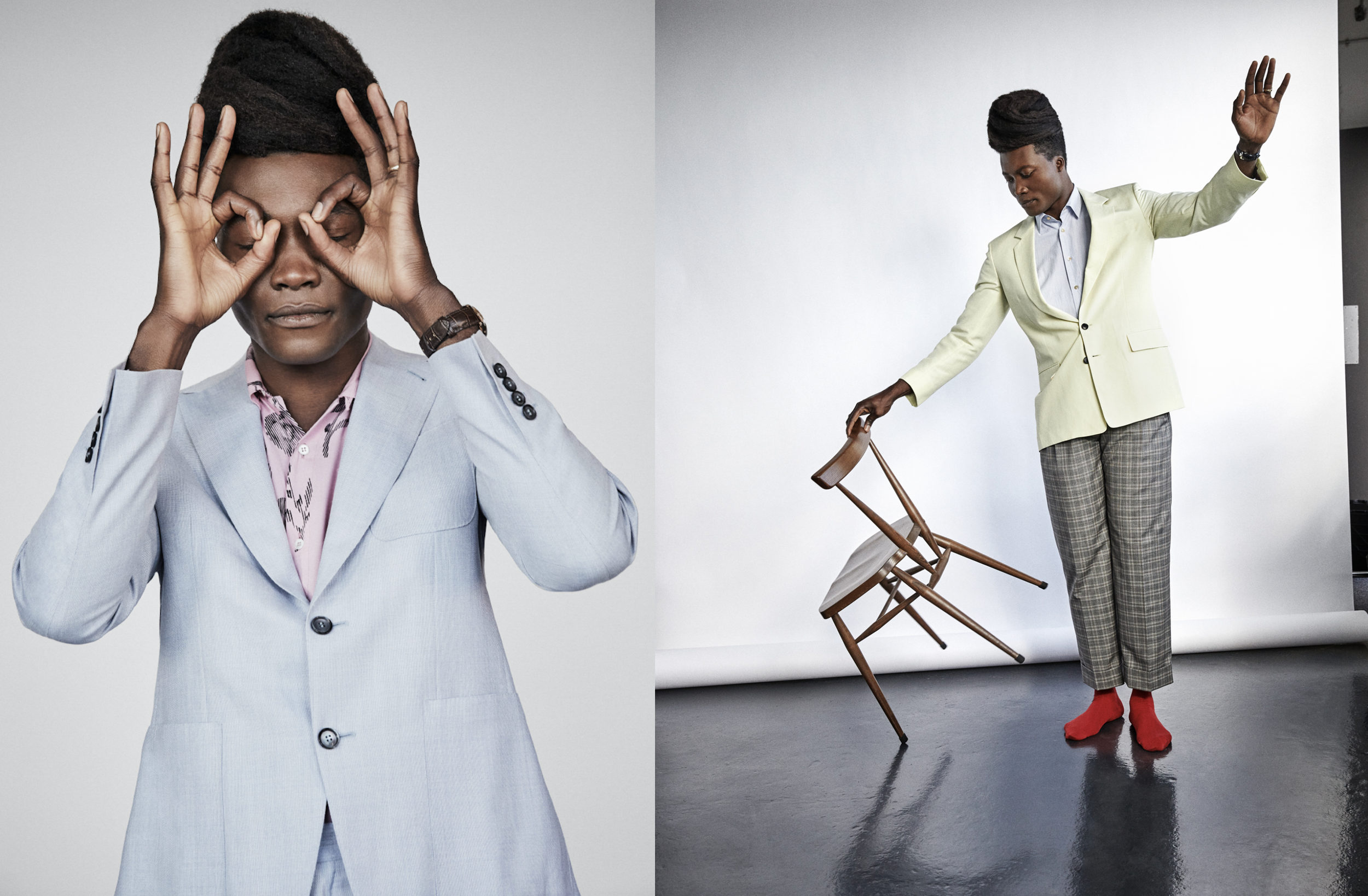 English poet, artists, vocalist, composer and musician, Benjamin Clementine photographed for the latest issue of Esquire Spain by Fast Management's Diego Merino.Clementine's debut album At Least for Now won the 2015 Mercury Prize. Considered by The New York Times as one of the 28 geniuses who defined culture in 2016, Clementine's compositions are musically incisive and attuned to the issues of life but also poetic, mixing revolt with love and melancholy, sophisticated lyricism with slang and shouts, and rhyming verse with prose monologues. He moved to popular art music, breaking free from traditional song structure, inventing his own dramatic and innovative musical territory. In February 2019 he was named a knight of the Order of Arts and Letters by the French government, in recognition of his contribution to the arts.